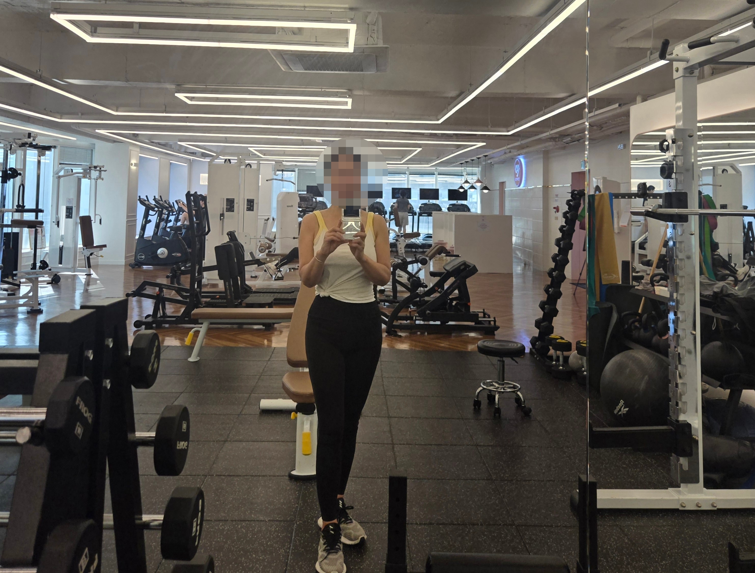 가장 먼저 언급하고 싶은 점은 여성전용 헬스장이라는 점입니다. 예전에 남녀 공용 헬스장에 다닐 때는, 레깅스를 입는 것도 신경이 쓰였고 남자들이 기구를 쓴 후 매번 바꿔야 하는 기구 무게 조절이나 세팅 변경이 은근히 큰 스트레스였습니다.