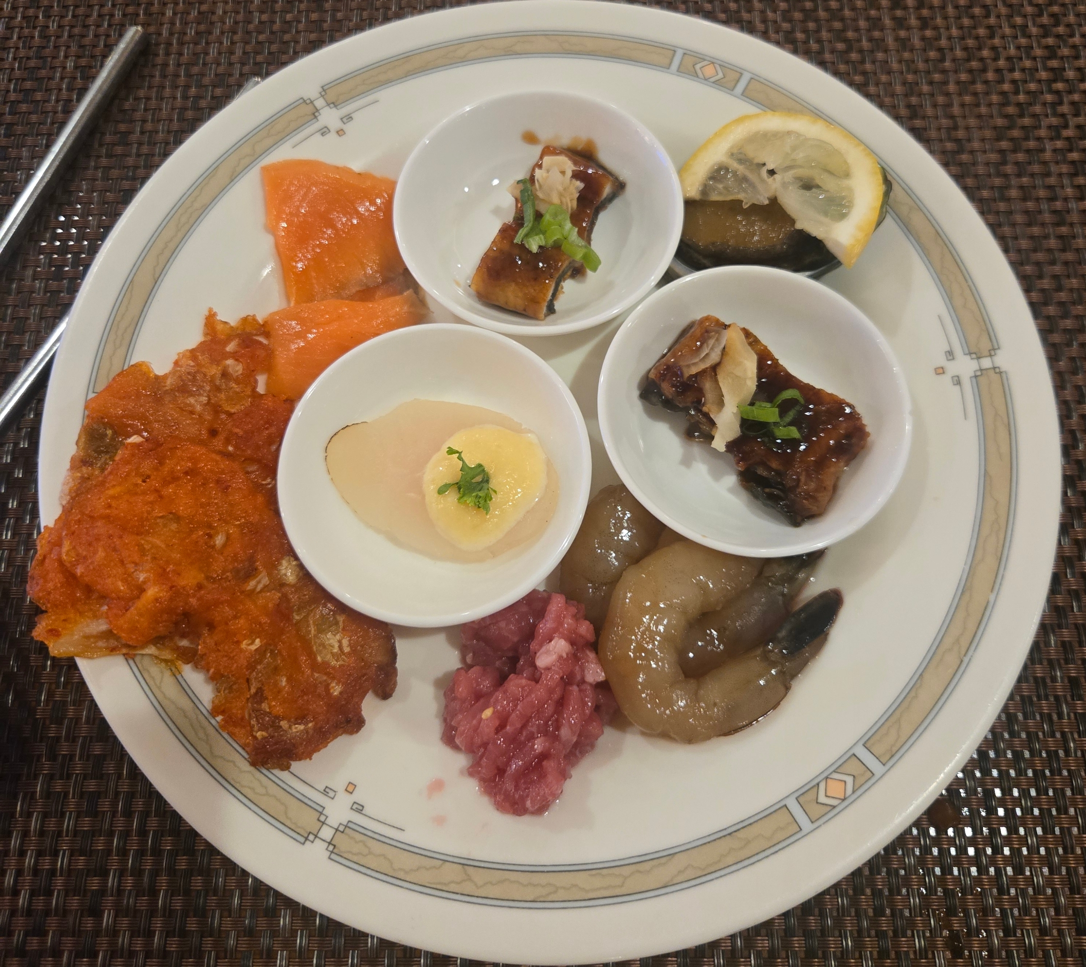 부모님은 스시와 함께 민어탕을 맛보셨는데, 국물이 진~하면서도 시원해서 “이게 진짜 호텔 퀄리티지”라며 두 번이나 가져다 드셨어요. 뷔페에서 흔히 보기 힘든 메뉴라 그런지 더 특별하게 느껴졌습니다.