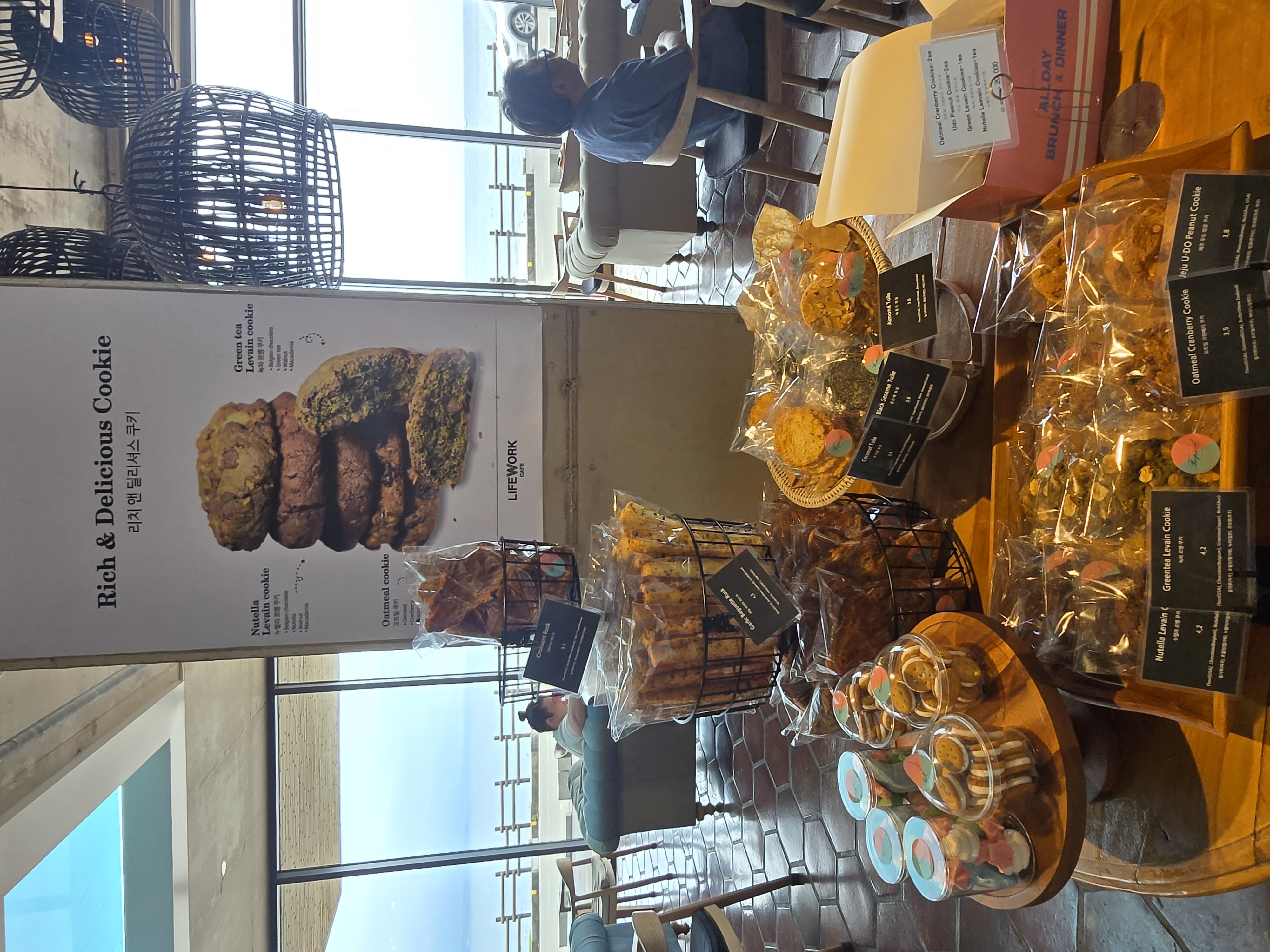 운 좋게도 계단식 소파 자리가 비어 있었는데, 이건 말 그대로 ‘황금 좌석’이었습니다. 푹신한 쇼파에 앉자마자 친구 한 명은 바로 드러누워 “여긴 잠깐 자도 되겠다”라며 장난을 치더군요. 그 모습을 보며 다 같이 웃다가, 시원한 아메리카노를 한 모금 들이키니 여태껏 걸었던 피로가 싹 가셨습니다. 제주 여행에서 이런 여유를 누리는 순간이야말로 가장 소중하다는 생각이 들었습니다.