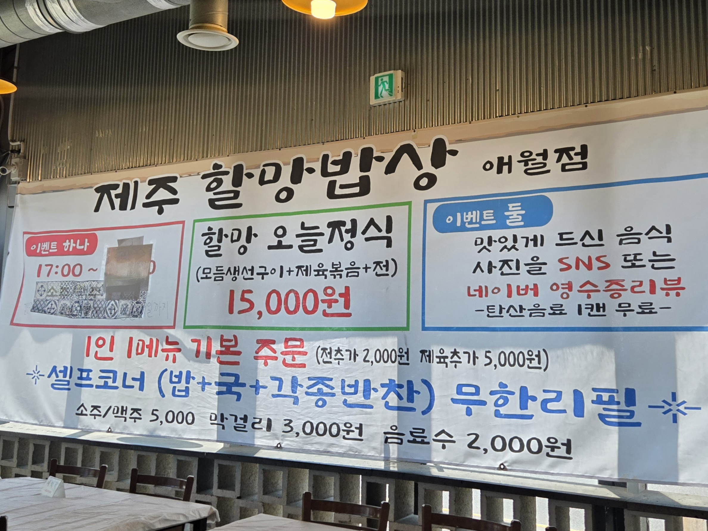 제주 애월에서 아침겸 점심을 고민 중이라면, 해장국 대신 ‘밥상 한가득 행복’을 경험할 수 있는 "할망밥상"을 추천합니다. 현지인들이 자신 있게 안내하는 곳답게 푸짐함, 맛, 분위기, 모든것이 여행자들의 기대치를 훌쩍 넘어서는 곳입니다.